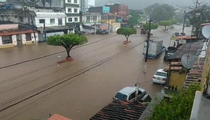 Poucos mais de vinte minutos de chuva foram suficientes para causar, no início da tarde desta terça-feira, dia 20, um grande alagamento em Ilhéus, principalmente nas ruas centrais e no bairro do Malhado.