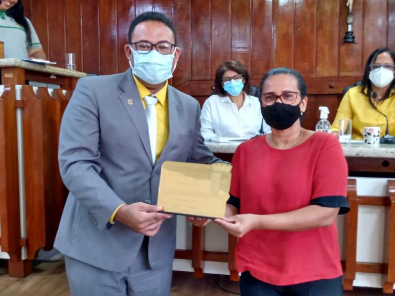 Em sessão especial da Câmara de Itajuípe, nesta sexta-feira, dia 12, pela passagem do Dia Internacional da Mulher, o vereador Mateus Mattos, do Podemos, homenageou a professora e conselheira tutelar Joelma Custódio.