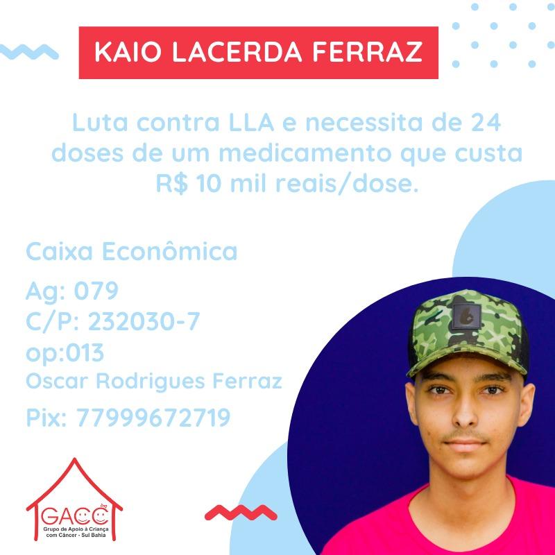 O jovem violinista, Kaio Lacerda Ferraz, aos quinze anos, foi diagnosticado com Leucemia Linfoide Aguda. Natural de Vitória da Conquista, Kaio foi encaminhado para Itabuna e desde então recebeu apoio e tratamento com a equipe multidisciplinar do Grupo de Apoio à Criança com Câncer Sul Bahia.