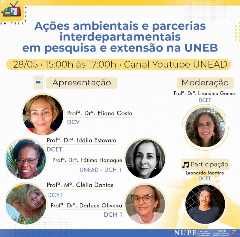 Divulgar ações socioambientais realizadas pelos projetos de extensão e pesquisa os departamentos de Ciências Humanas e de Ciências Exatas e da Terra da Universidade do Estado da Bahia é o objetivo de uma live que será realizada na tarde sexta-feira, dia 28. O evento, previsto para iniciar às 15 horas por meio do Canal Youtube Unead, será mediado por Lirandina Gomes, doutora em Geografia e professora titular do Departamento de Ciências Exatas e da Terra da Uneb.