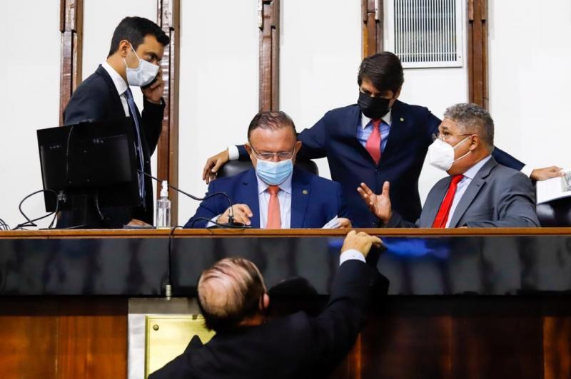 O presidente da Assembleia Legislativa da Bahia, deputado Adolfo Menezes comandou, na tarde desta terça-feira, dia 30, a sessão extraordinária mista – presencial e virtual – da Casa, que aprovou o projeto de lei que dispõe sobre a revisão do Plano Plurianual 2020/2023.